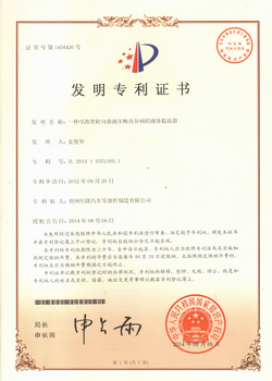 一种可改善转向器液压噪音异响的液体稳流器(发明专利) 一种低噪音汽车转向器转阀(实用新型)